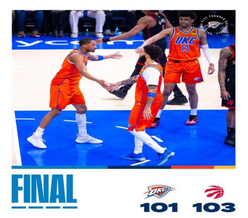 猛龙送雷霆赛季第10败巴恩斯关键封盖+前场板亚历山大24+6