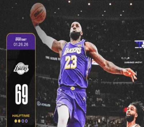 次节回来,詹姆斯突然发威,反击暴扣得手后再中三分和中距离,一人连得7分 ,目前9中7已经砍下15分,带队轰出16-2进攻高潮,湖人领先到9分。海斯身后追防大帽封盖吉迪上篮,蒂米被打到面部走回更衣室,裁判回看吹多森姆普通进攻犯规。詹姆斯持球强攻,顶着防守再度打进还有加罚,随后反击起飞再送上标志性战斧劈扣,13中9已经砍下20分,创造赛季半场新高。
